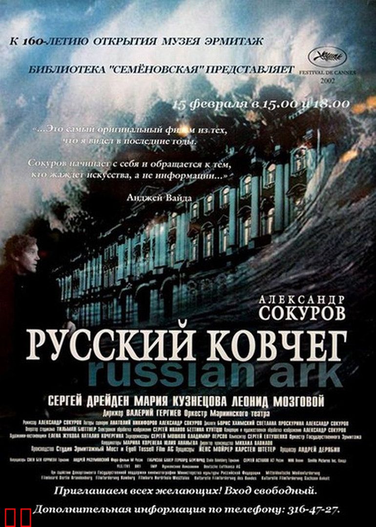 一名当代电影人与另一个来自19世纪的法国外交官(Sergei Dontsov 饰)发现自己置身于圣彼得堡的一座古老的宫殿中,周围的人完全看不到他ccc。两人结伴在宫殿中徘徊,见证了暴怒的彼得大帝用鞭子抽打他的将军;凯瑟琳女皇的私人生活;革命前夕末代沙皇一家最后的晚餐以及1913年最后一场辉煌盛大的宫廷舞会。短短100分钟内,亲身经历了俄国200多年的历史……本片荣获2004年阿根廷影展最佳外语片奖、2003年德国相机奖剧情片荣誉奖、2003年西班牙奇幻电影奖最佳男主角(Sergei Dontsov),最佳剧本和最佳导演、2004年尼卡奖最佳美术指导、2003年旧金山影评人协会荣誉奖、2002年多伦多国际电影节视觉奖。
